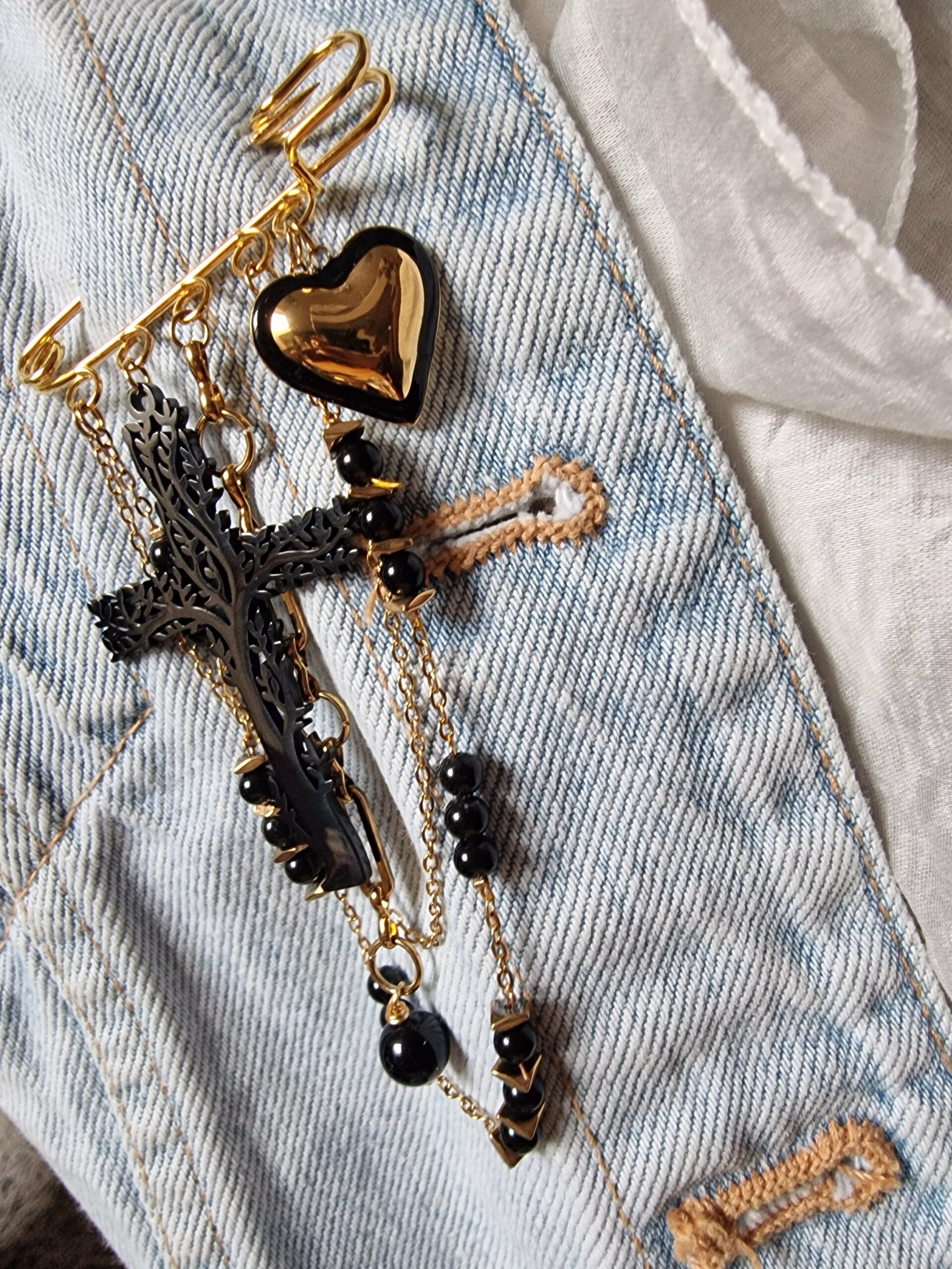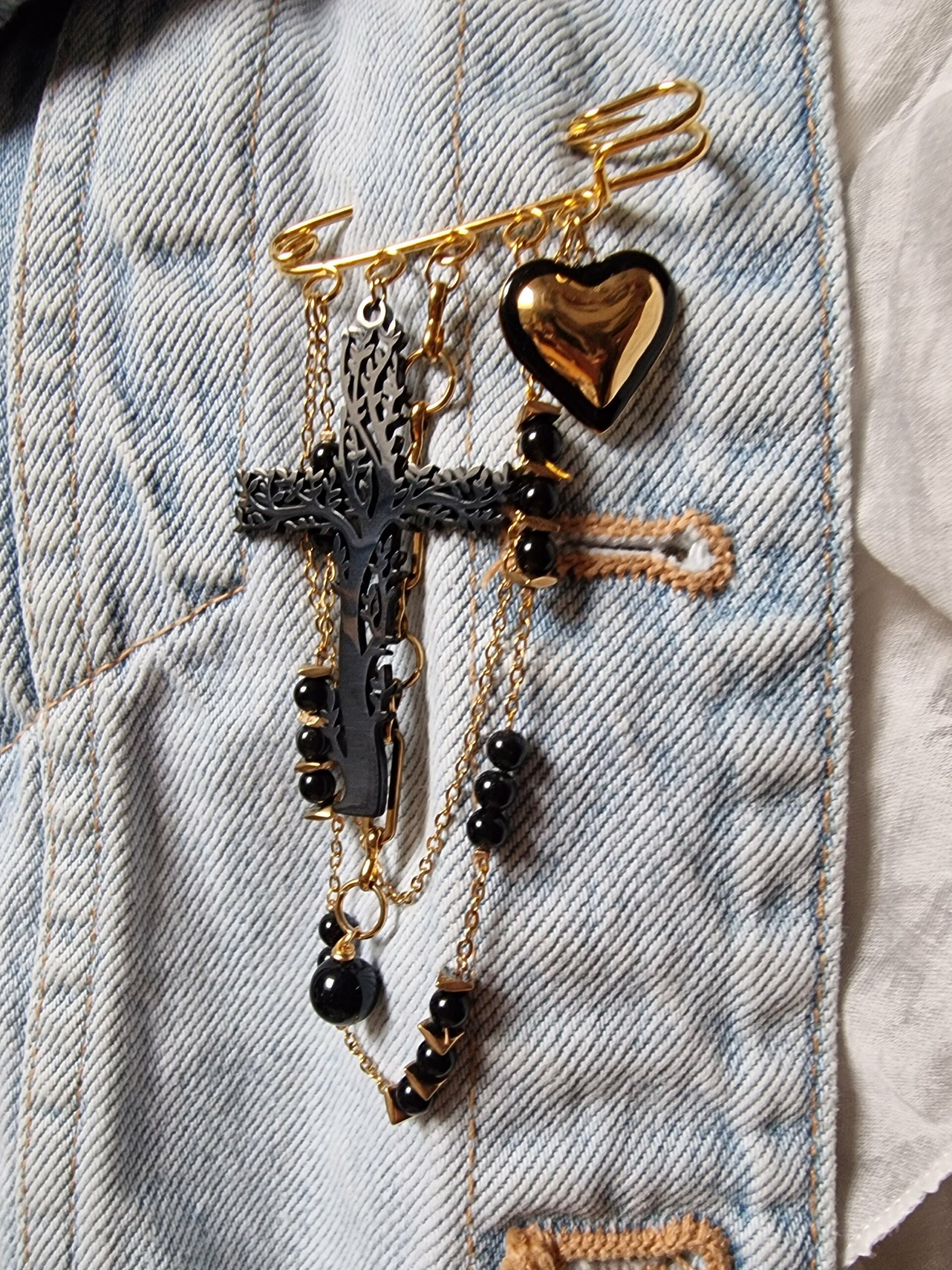 Un cœur, une croix arbre de vie, de l’obsidienne…