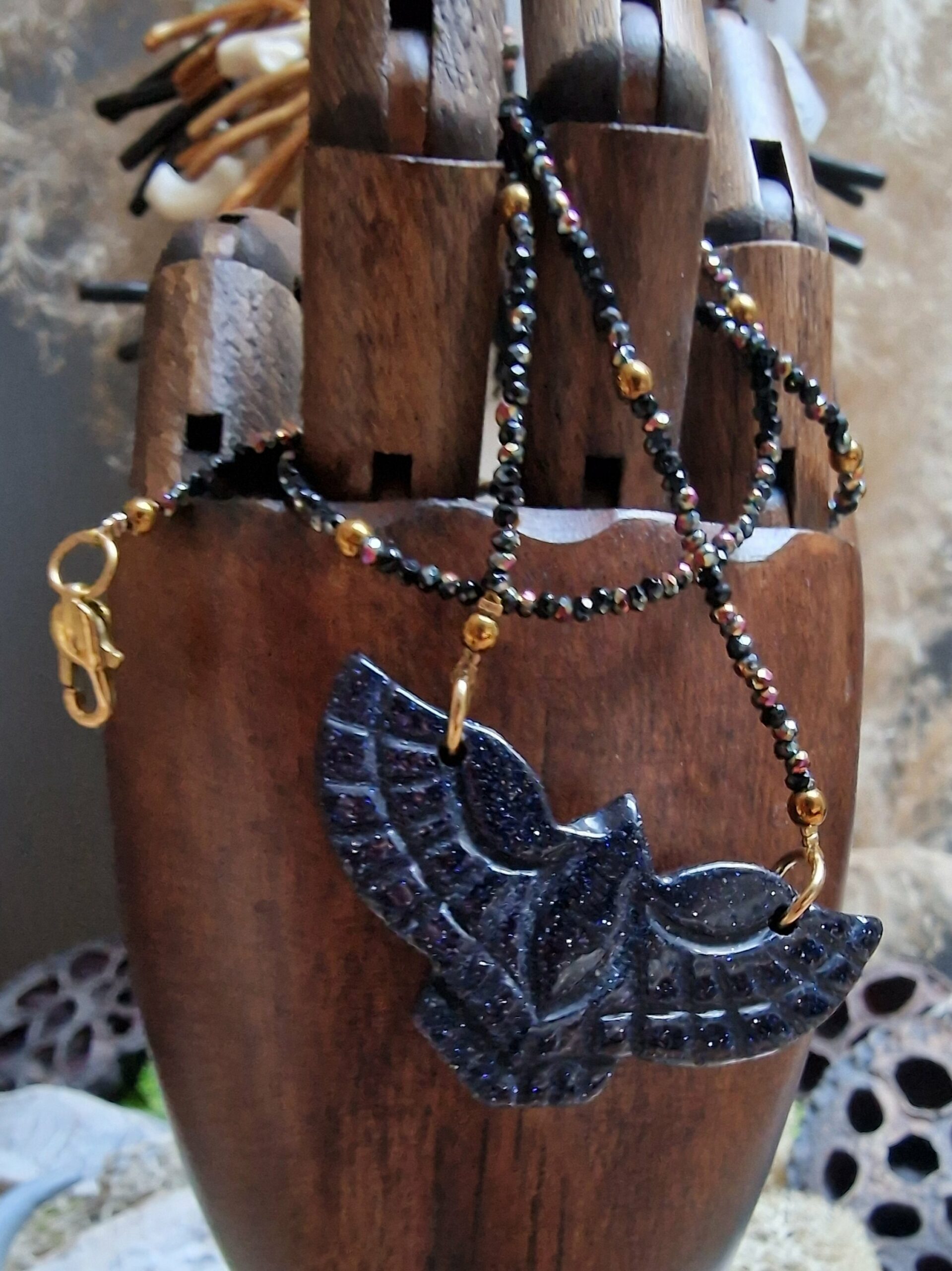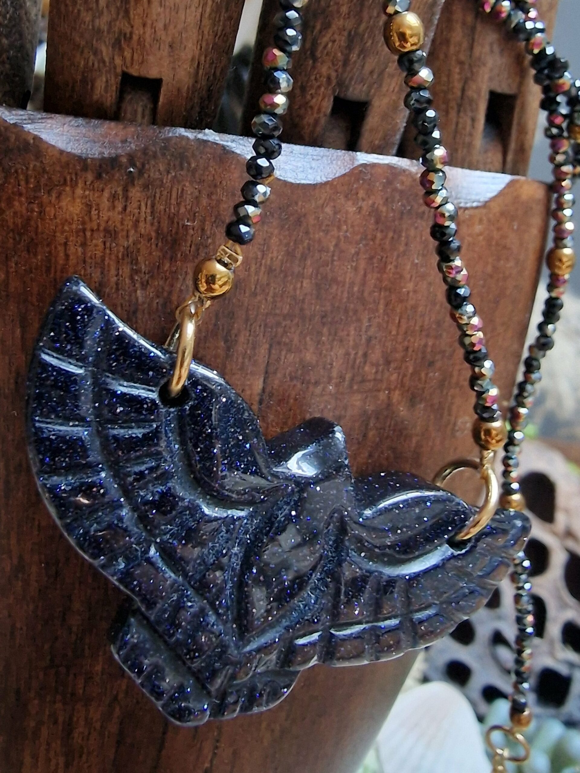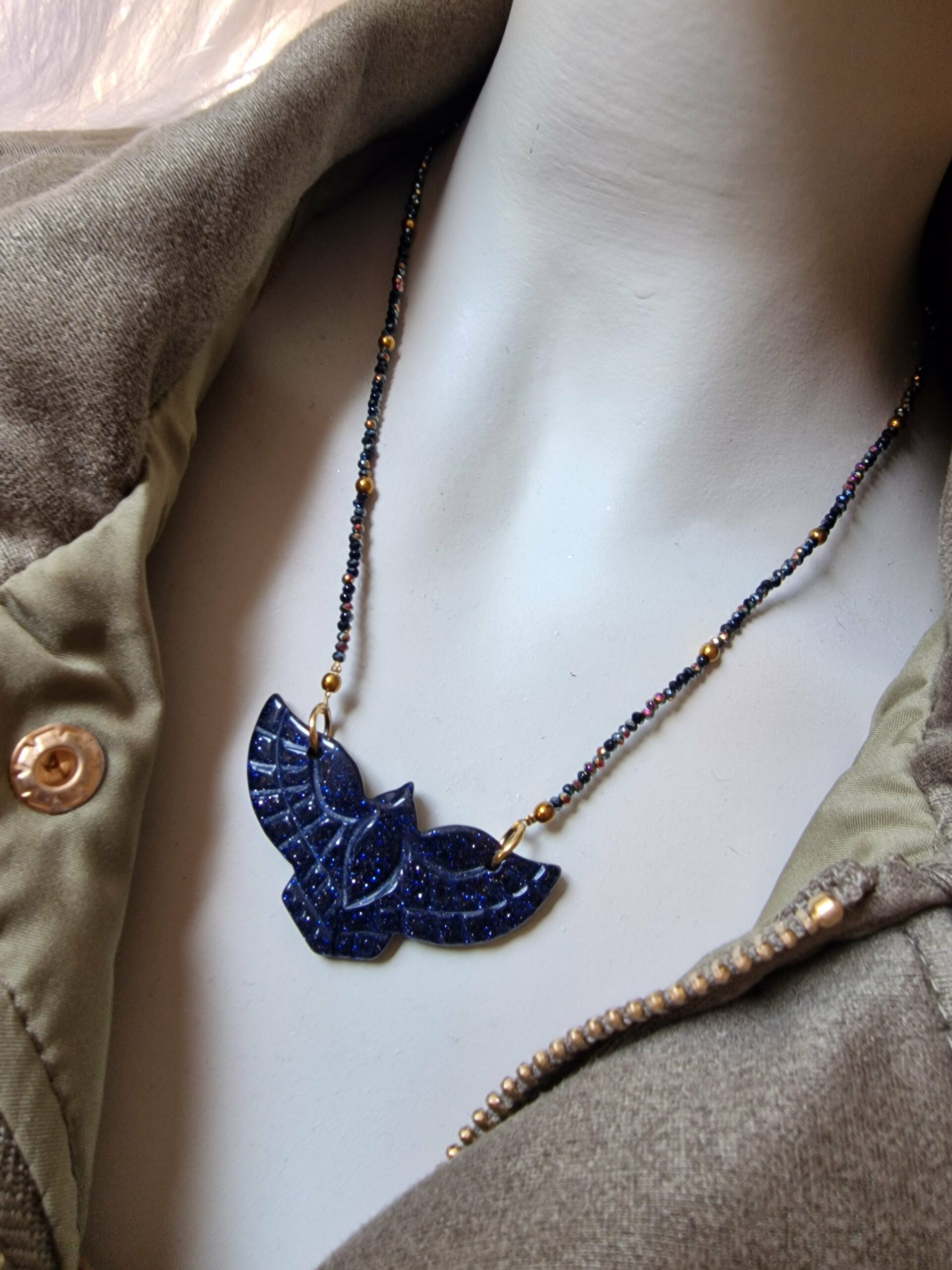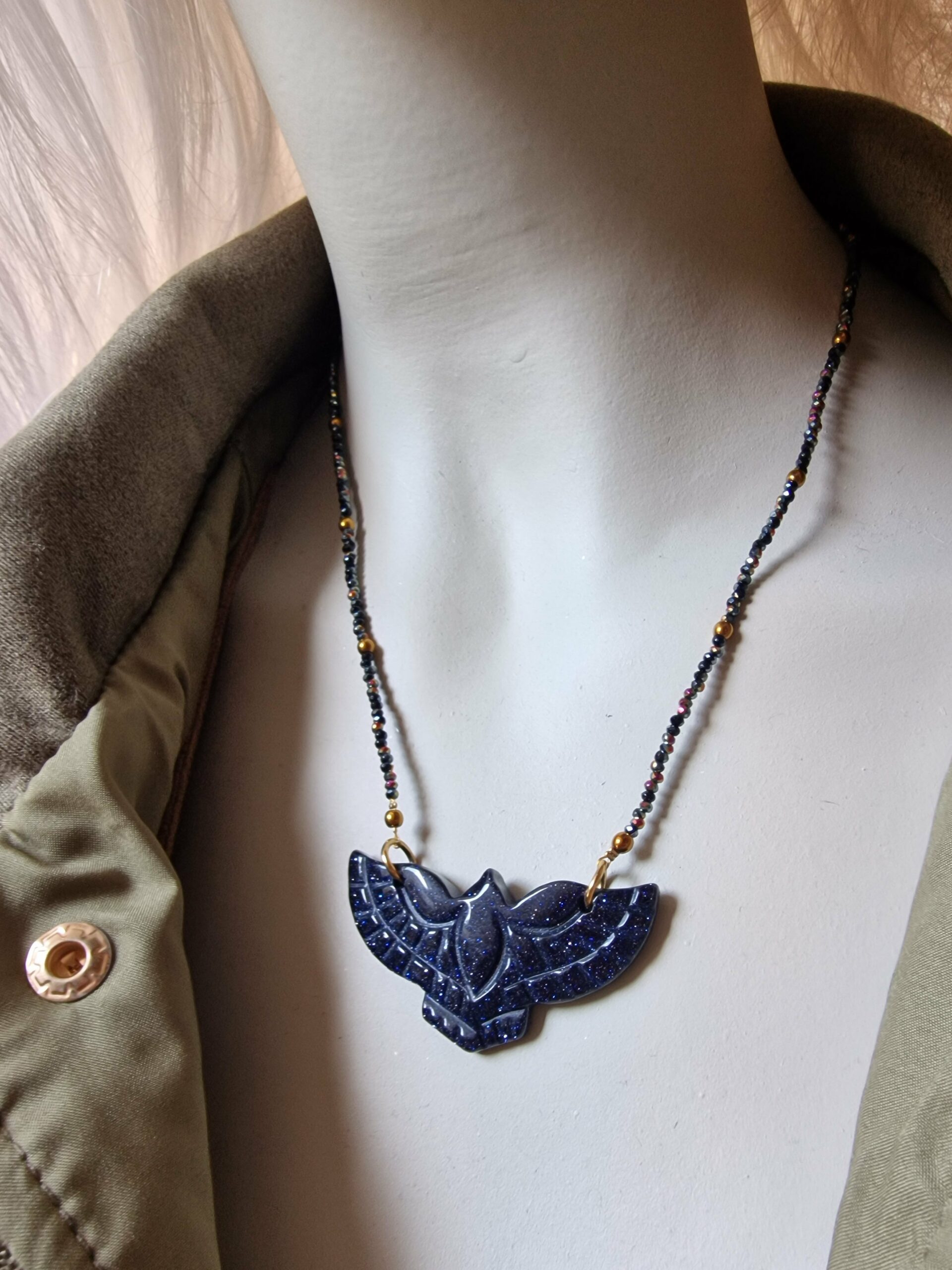 Oh waouh đ celui-ci a une prĂ©sence incroyable ! Lâaigle bleu nuit scintillant façon lapis-lazuli donne une allure Ă la fois mystique et puissante, tout en restant Ă©lĂ©gante et bohĂšme chic.